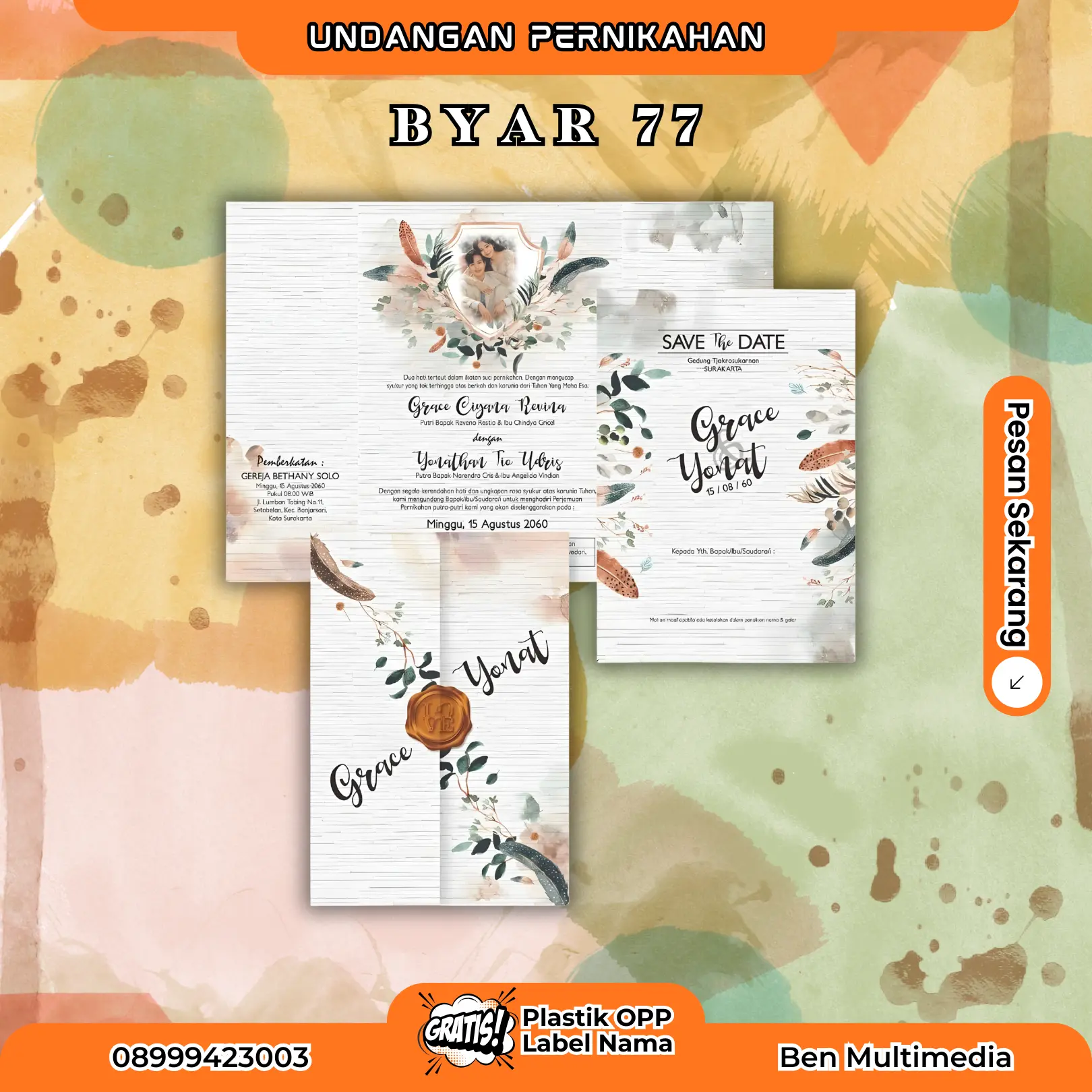 Jika Anda sedang mencari undangan pernikahan yang cakep, kualitasnya mantap, harganya tetap masuk akal, dan bisa langsung cetak tanpa ribet, maka Byar 77 Cetak Blangko Undangan dari Ben Multimedia adalah pilihan yang benar-benar am-byar!