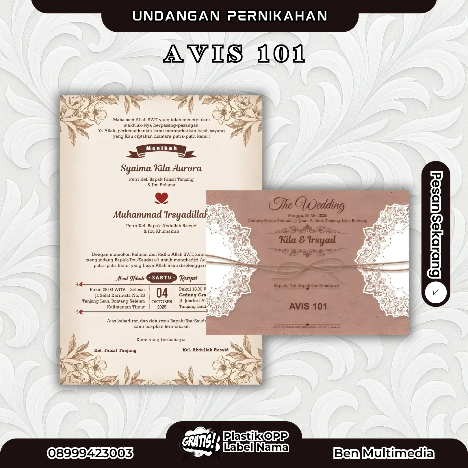 Dengan desain yang halus dan karakter visual yang berwibawa, Blangko Avis 101 menjadi pilihan unggulan bagi banyak pasangan yang mendambakan undangan formal namun tetap hangat.