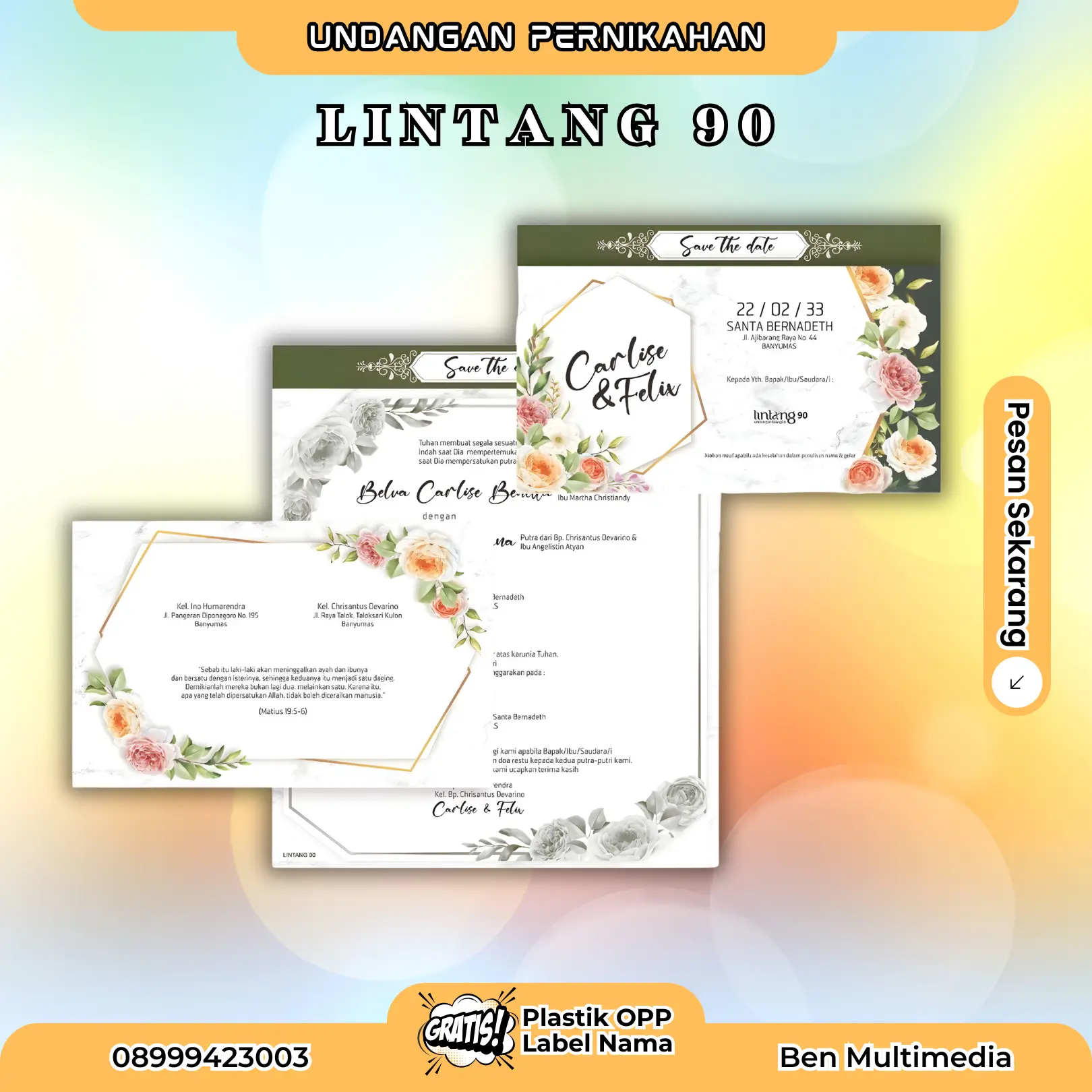Cetak Blangko Lintang 90 termurah dan elegan! Undangan pernikahan Softcover BC 150gsm, diskon jadi Rp1.000/pcs. Gratis plastik, stiker, edit file, revisi, dan Denah/QR Code. Minimal 50 lembar. Dapatkan Blangko Lintang 90 terbaik dari Ben Multimedia!