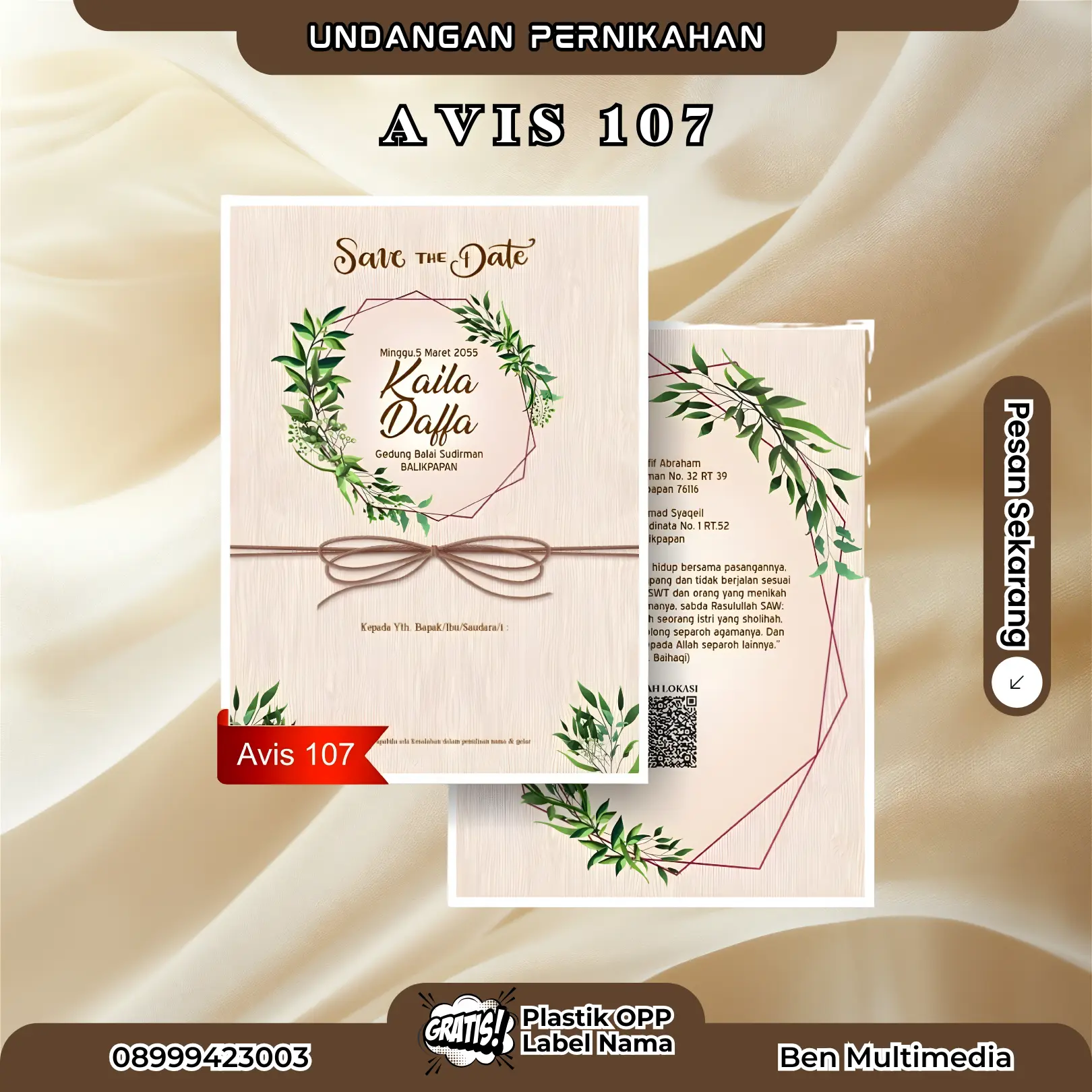 Ben Multimedia menghadirkan layanan Cetak Blangko Pernikahan Avis 107 sebagai solusi lengkap bagi pasangan yang menginginkan undangan elegan dengan harga terjangkau.