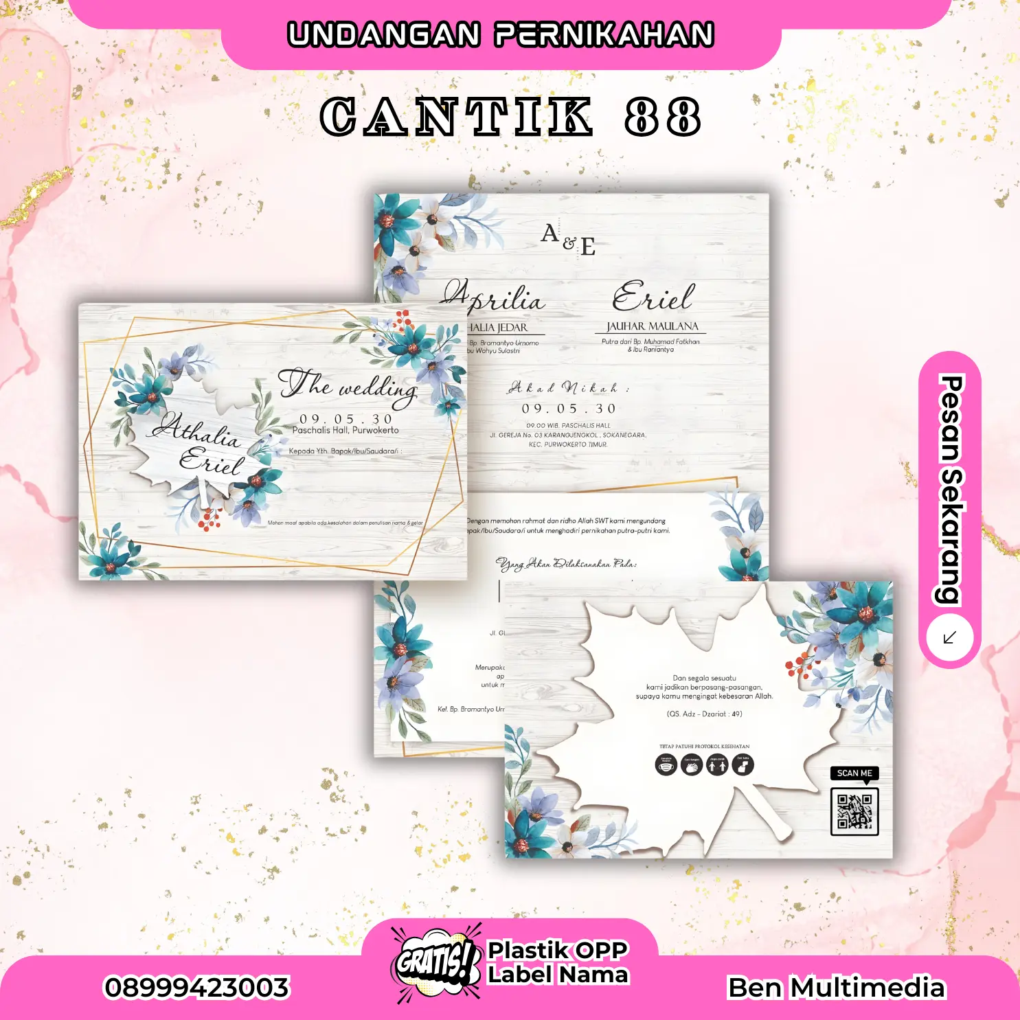 Produk ini juga sering dicari dengan nama cetak blangko pernikahan Cantik 88, Blangko Cantik 88, dan undangan Cantik 88.