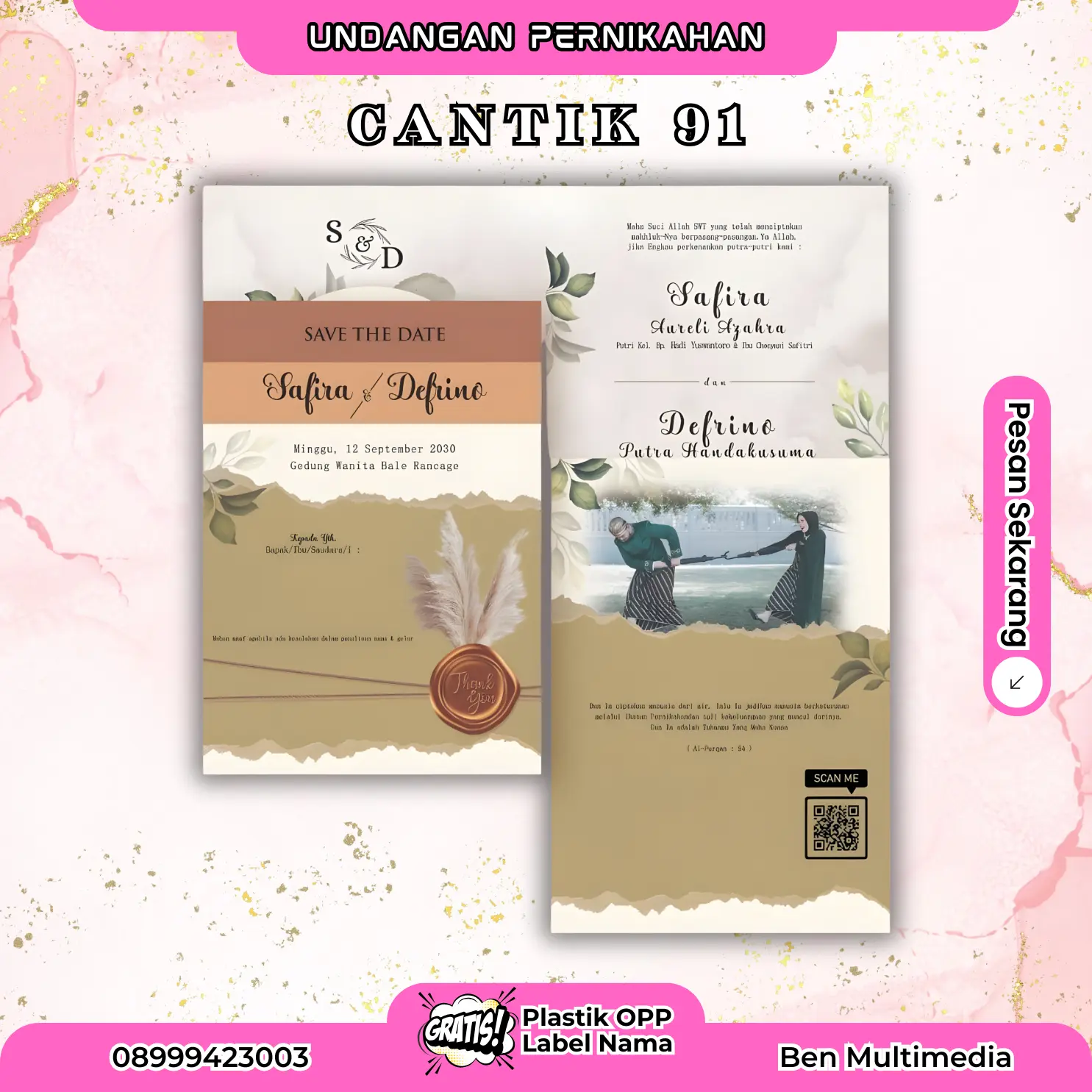 Pelayanan ramah dan komunikatif sejak proses konsultasi hingga undangan Cantik 91 siap kirim.