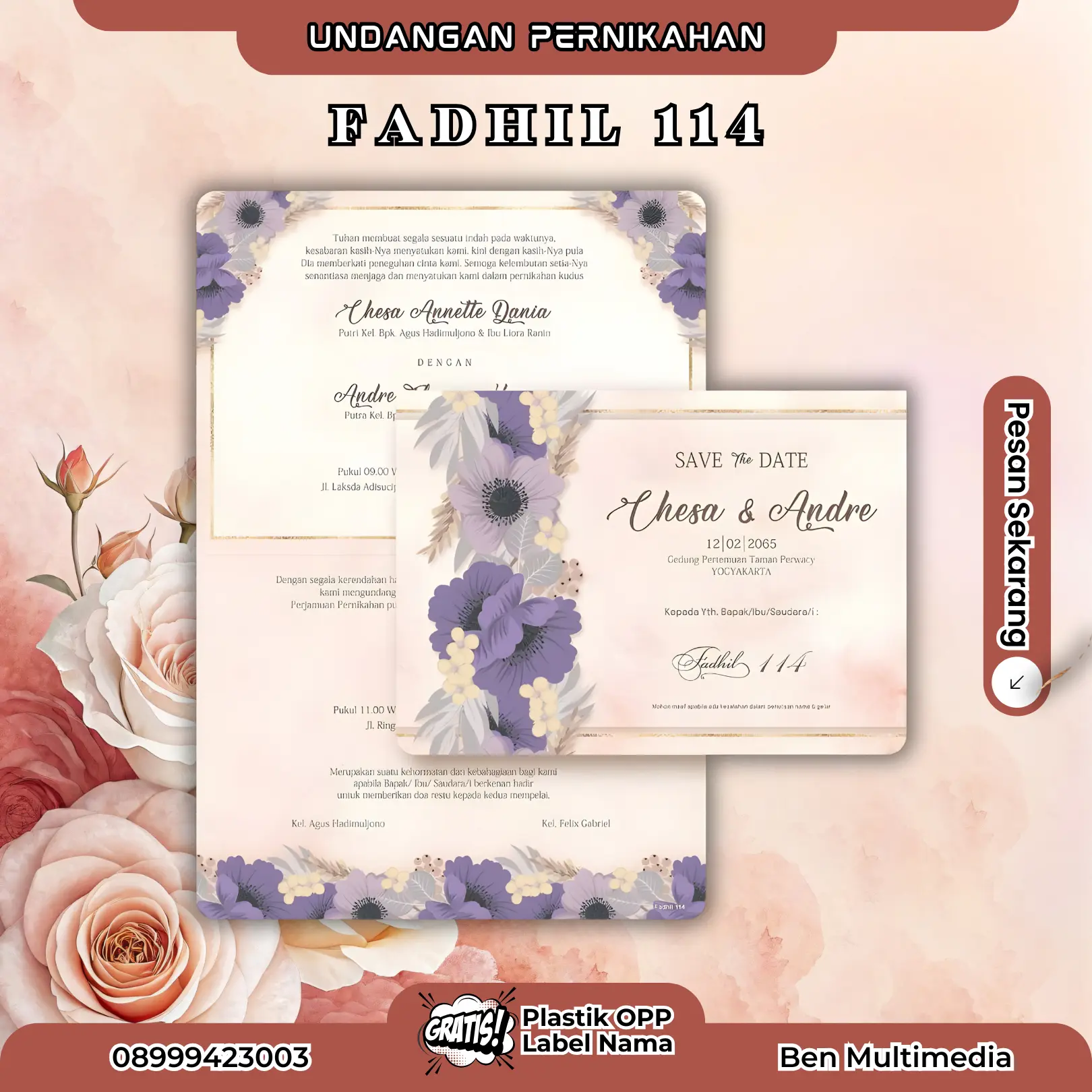 Di Ben Multimedia, kami menghadirkan layanan Cetak Blangko Undangan Fadhil 114 yang dirancang untuk pasangan yang menginginkan undangan elegan, rapi, dan mudah disesuaikan.