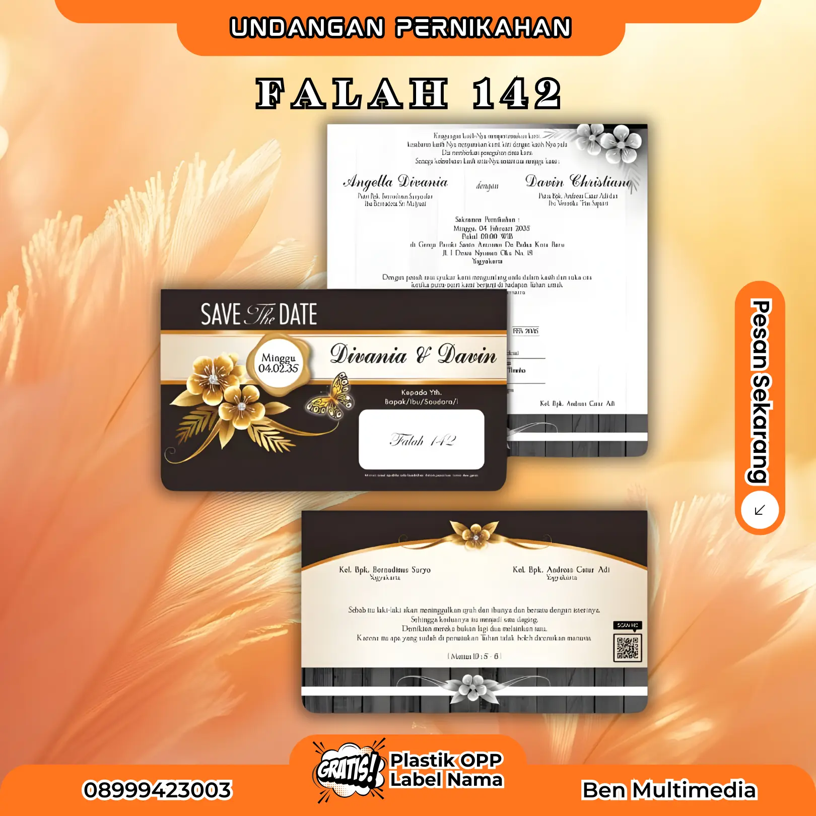 Layanan Cetak Falah 142 Blangko Undangan adalah jasa cetak undangan pernikahan menggunakan Blangko Falah 142 yang dikenal praktis, rapi, dan ekonomis.