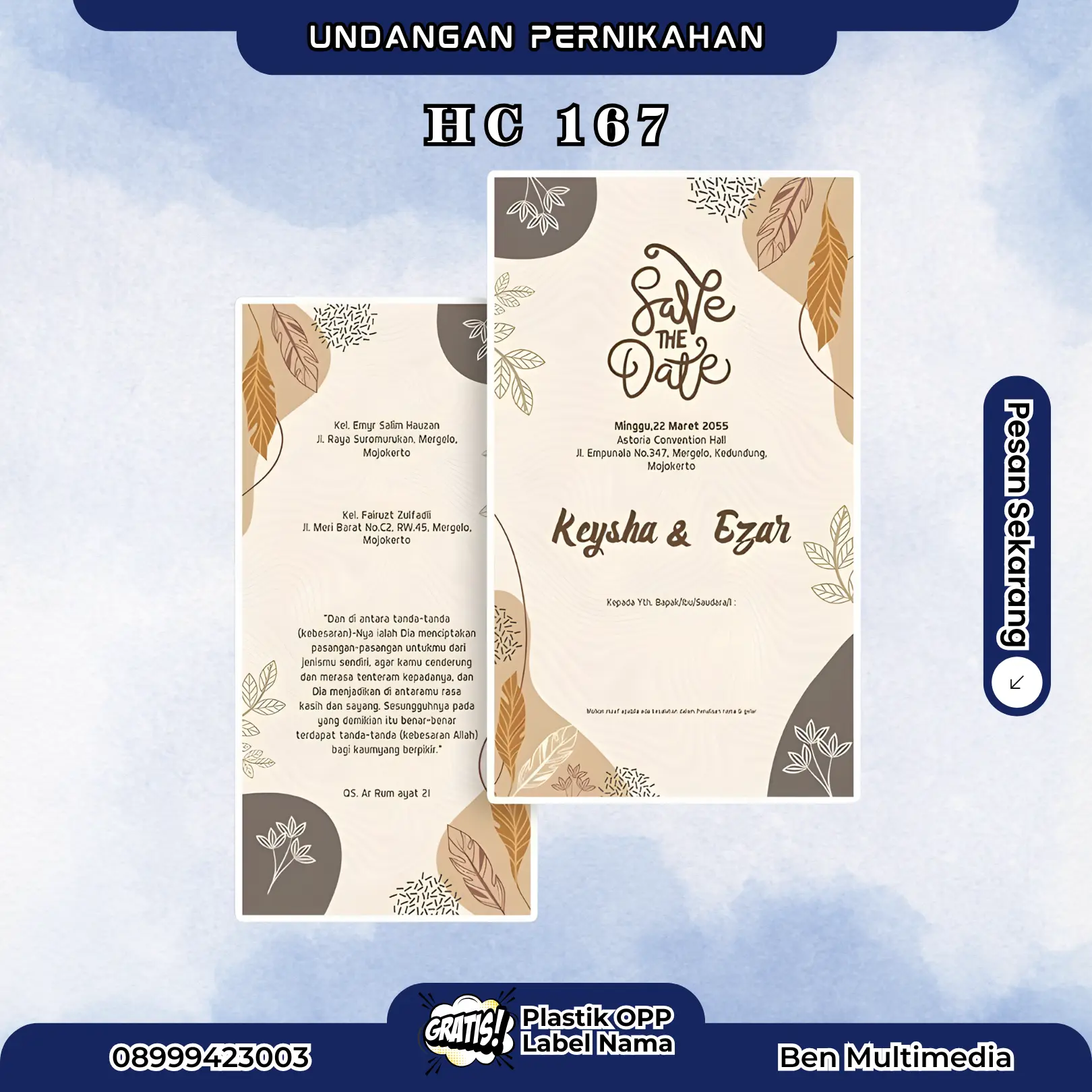 Cetak HC 167 Undangan Pernikahan dari Ben Multimedia adalah pilihan tepat bagi pasangan yang ingin memiliki undangan cantik dengan harga terjangkau. Dengan berbagai bonus gratis, pelayanan ramah, dan hasil cetak berkualitas tinggi, undangan HC 167 menjadi solusi praktis untuk mempersiapkan hari istimewa Anda.