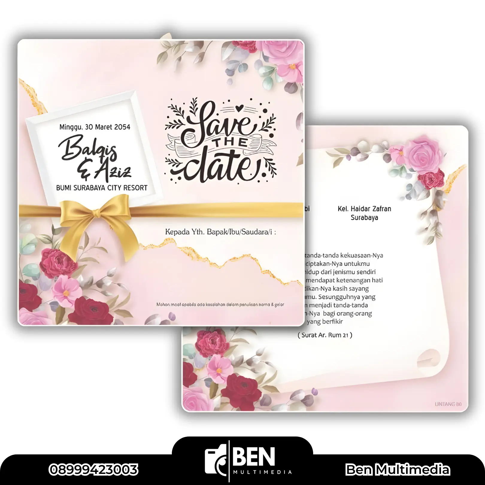 Di Ben Multimedia, kami memahami bahwa undangan pernikahan bukan sekadar kertas, melainkan representasi pertama dari acara sakral Anda.