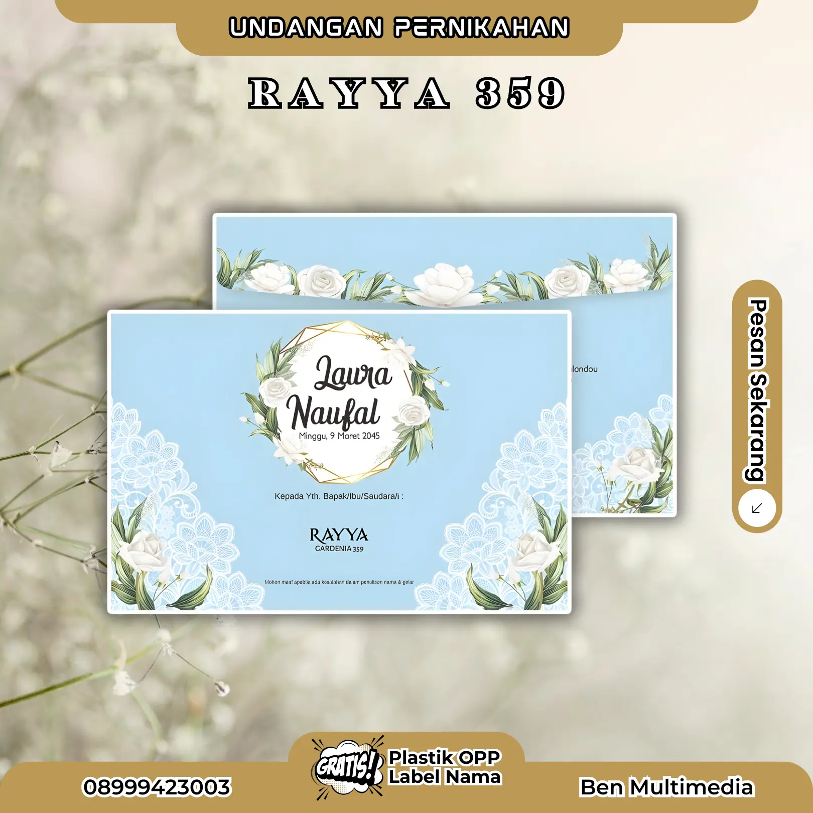Layanan cetak blangko pernikahan Rayya 359 di Ben Multimedia sangat sesuai bagi pasangan yang menginginkan undangan estetik, ekonomis, dan tetap berkualitas.