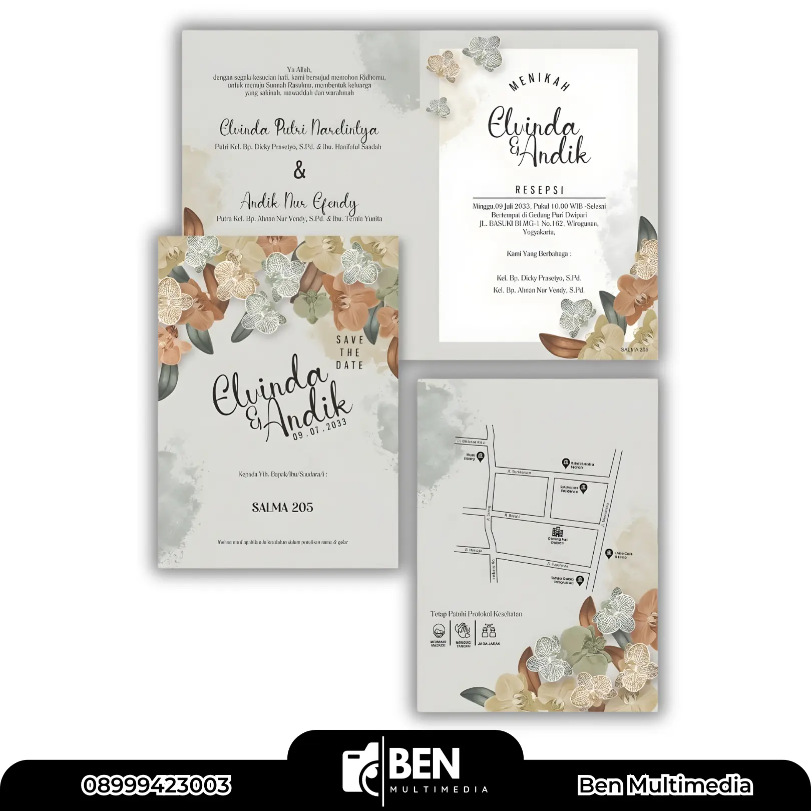Ben Multimedia percaya bahwa undangan bukan hanya kertas, tetapi pesan penuh harapan dan melalui Blangko Salma 205, setiap detail sengaja dibuat untuk menambah keindahan hari terpenting Anda.