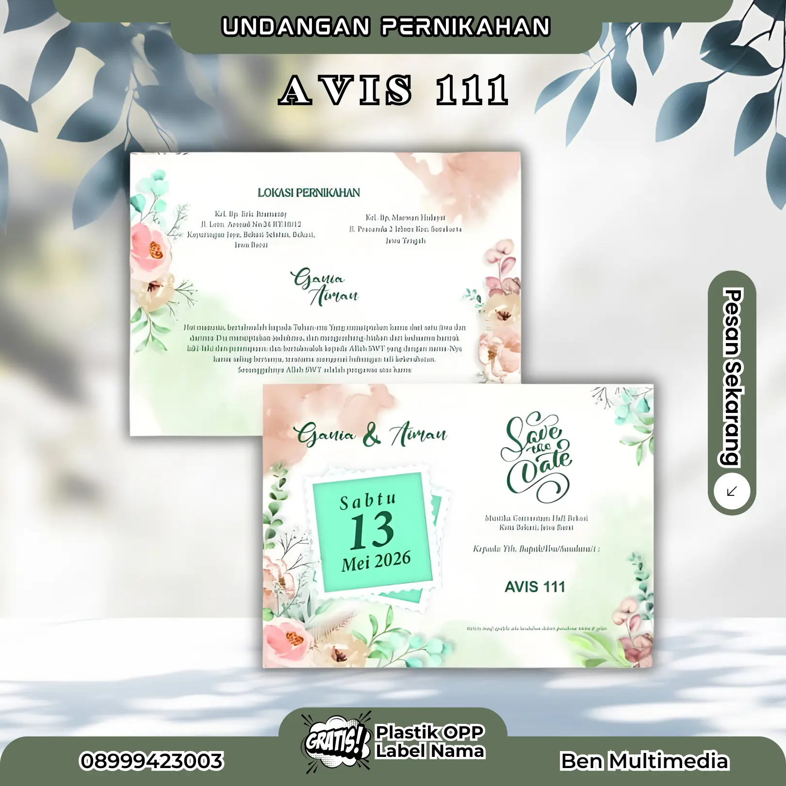 Jika Anda sedang mencari undangan yang tidak cuma cantik di tangan, tapi juga mencuri perhatian sejak pertama dipandang, maka Cetak Undangan Pernikahan AVIS 111 dari Ben Multimedia adalah jawabannya.