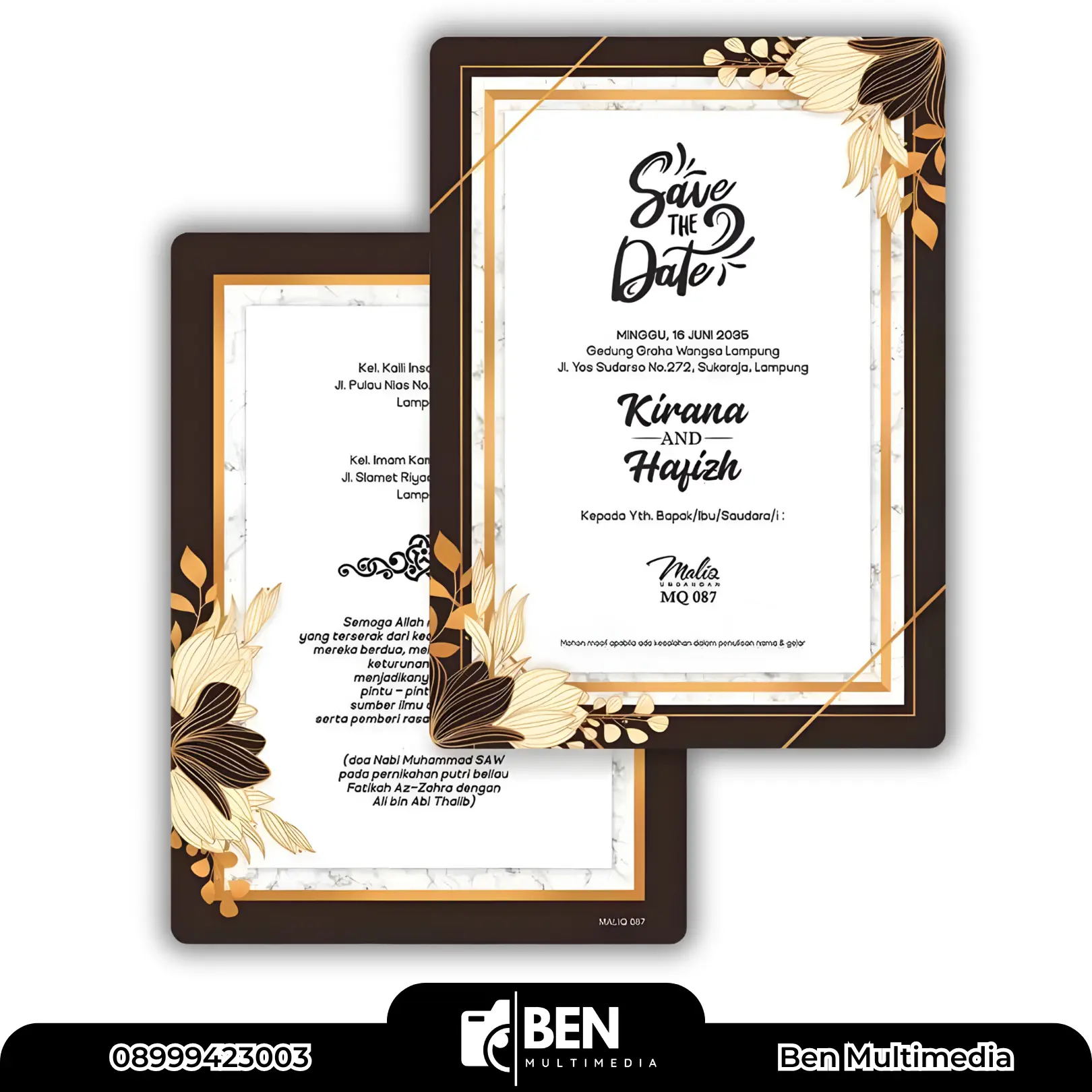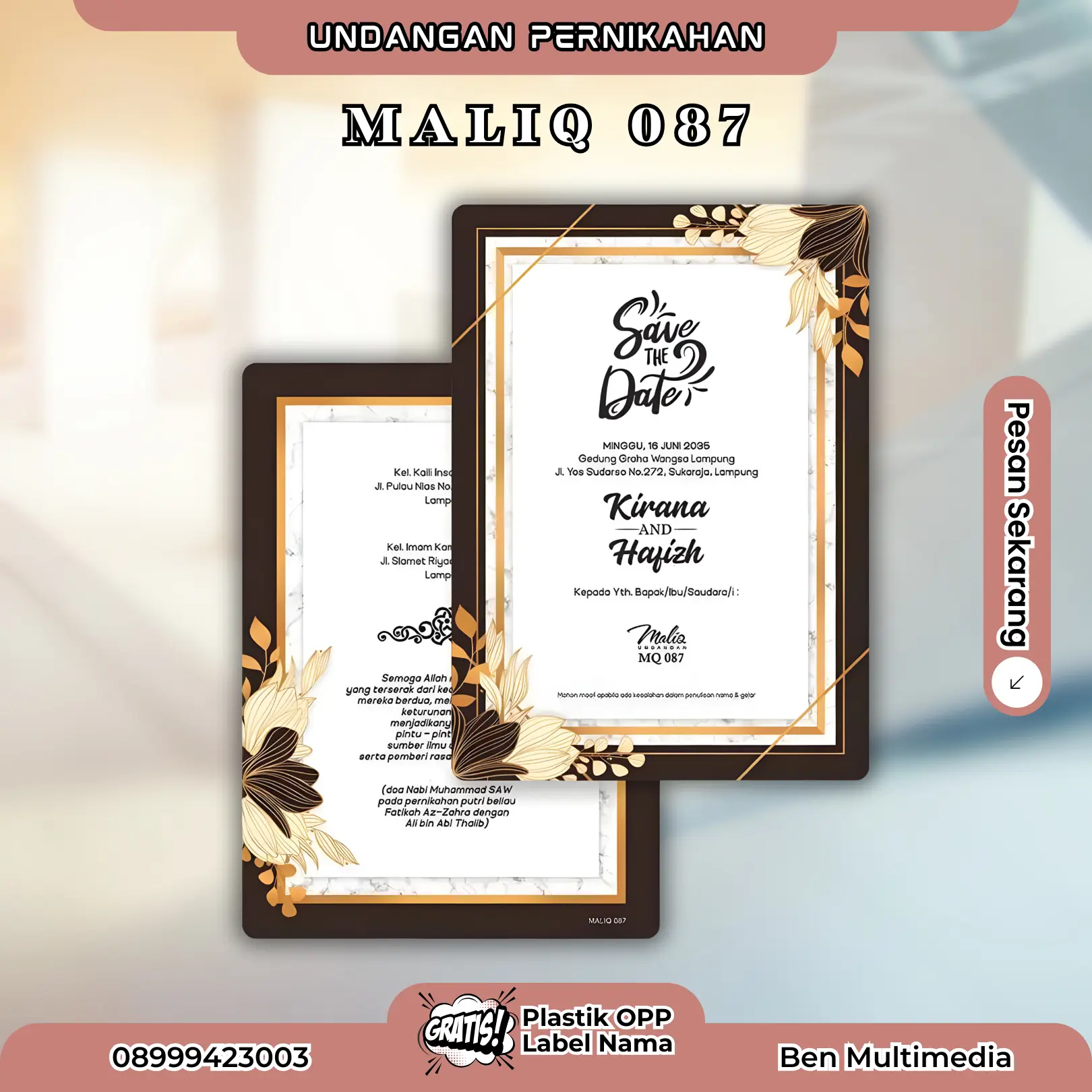 Cetak Undangan Pernikahan Maliq 87 – Dalam setiap perjalanan cinta, selalu ada satu momen yang patut diabadikan dengan kemurnian dan keindahan: hari ketika dua hati dipertemukan dalam satu ikatan.