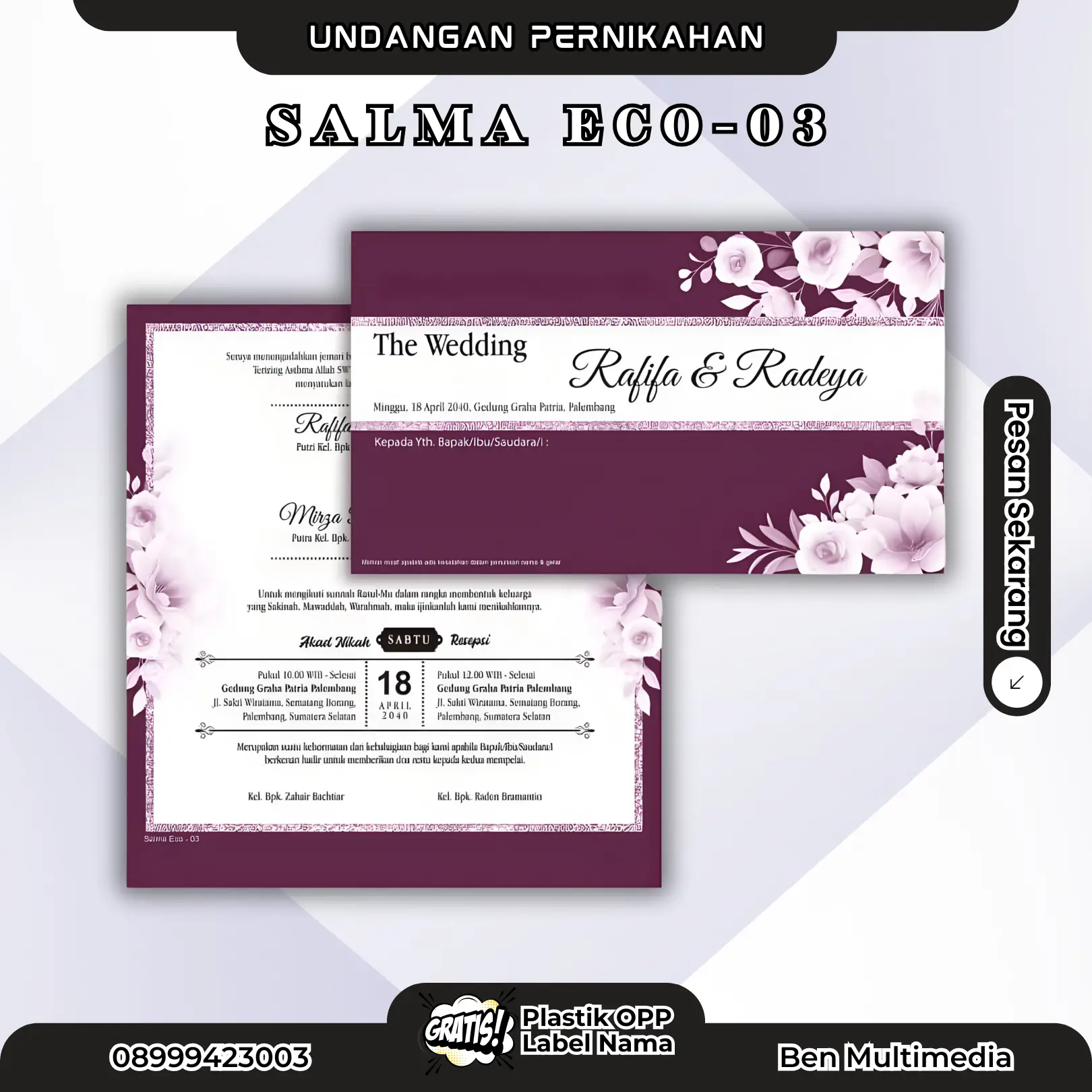 Ben Multimedia menghadirkan solusi terbaik lewat produk Cetak Undangan Salma Eco 03.