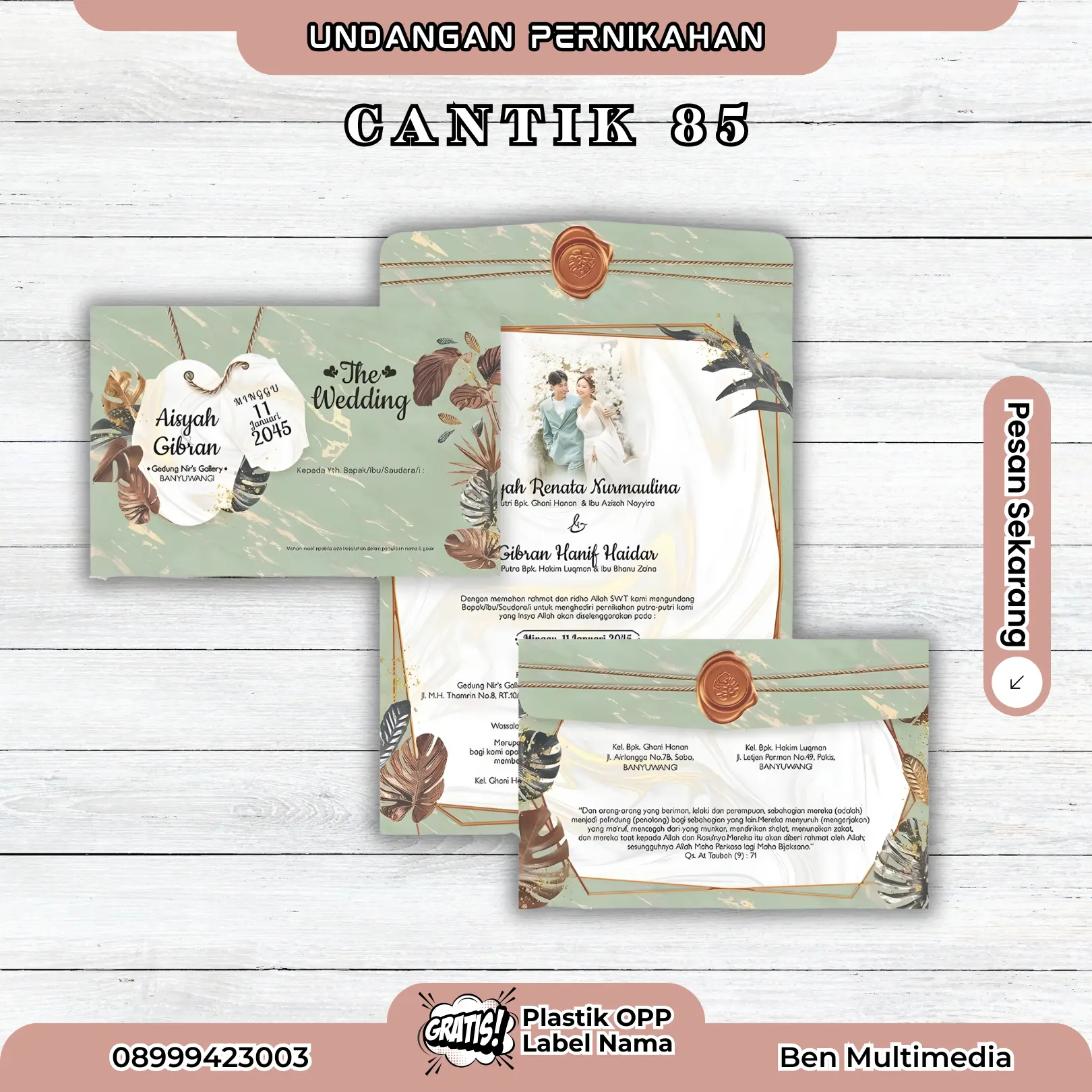 Produk undangan Cantik 85 ini sangat cocok untuk Anda yang ingin tampil simpel namun tetap anggun, tanpa mengorbankan kualitas bahan.