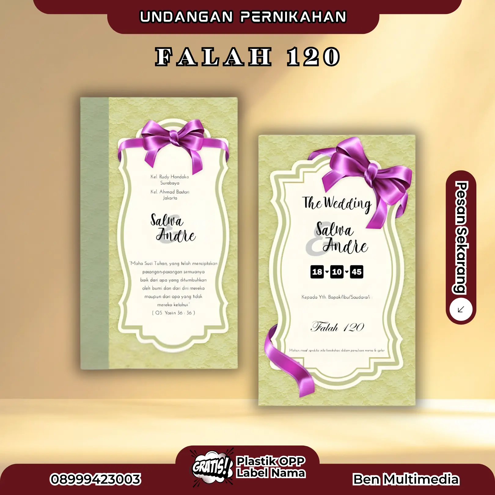 • Revisi Falah 120 gratis sampai benar-benar sesuai keinginan calon pengantin.