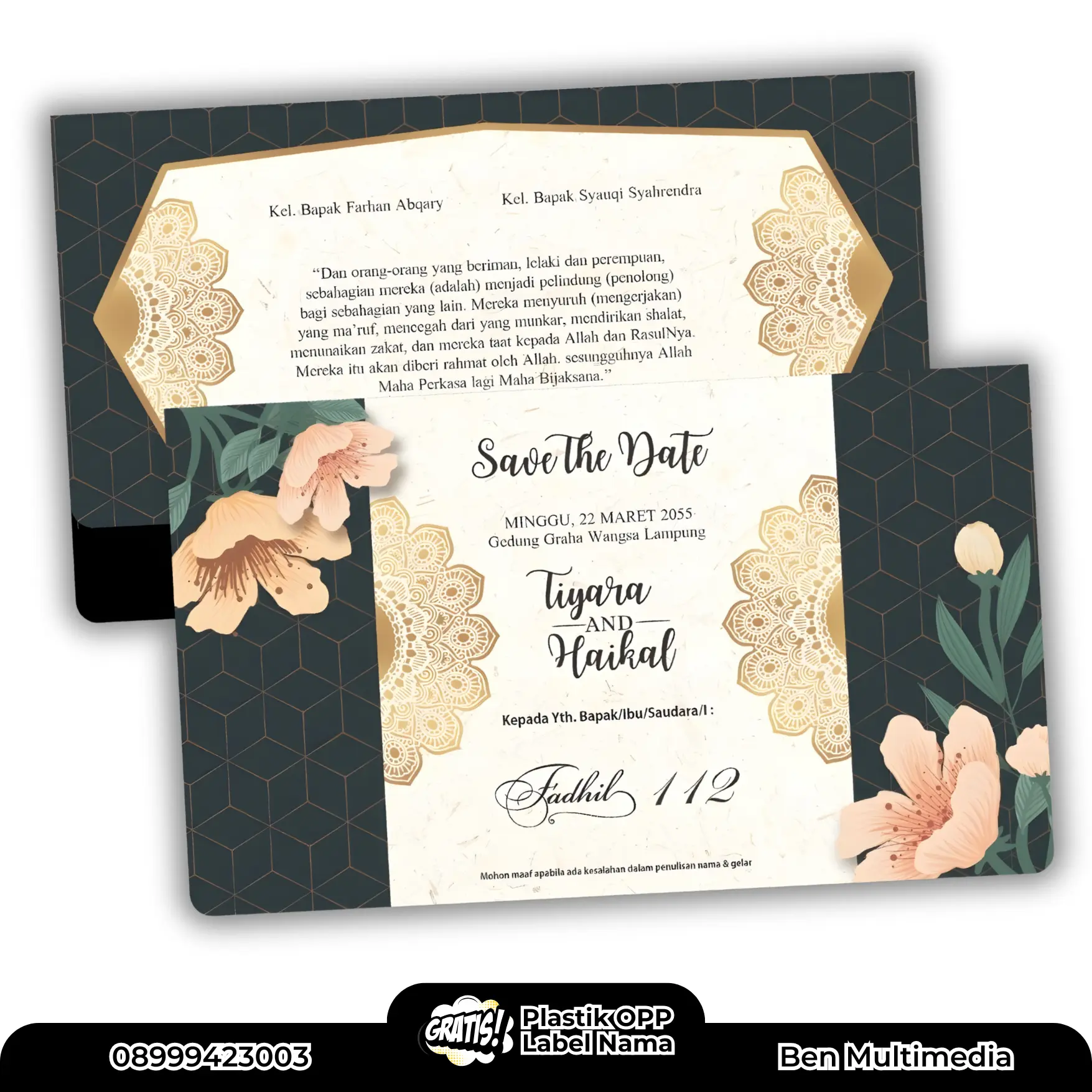 Undangan ini dirancang khusus dengan desain elegan dan bahan pilihan yang mampu memberikan kesan eksklusif sejak pertama kali dilihat oleh tamu undangan Anda.
