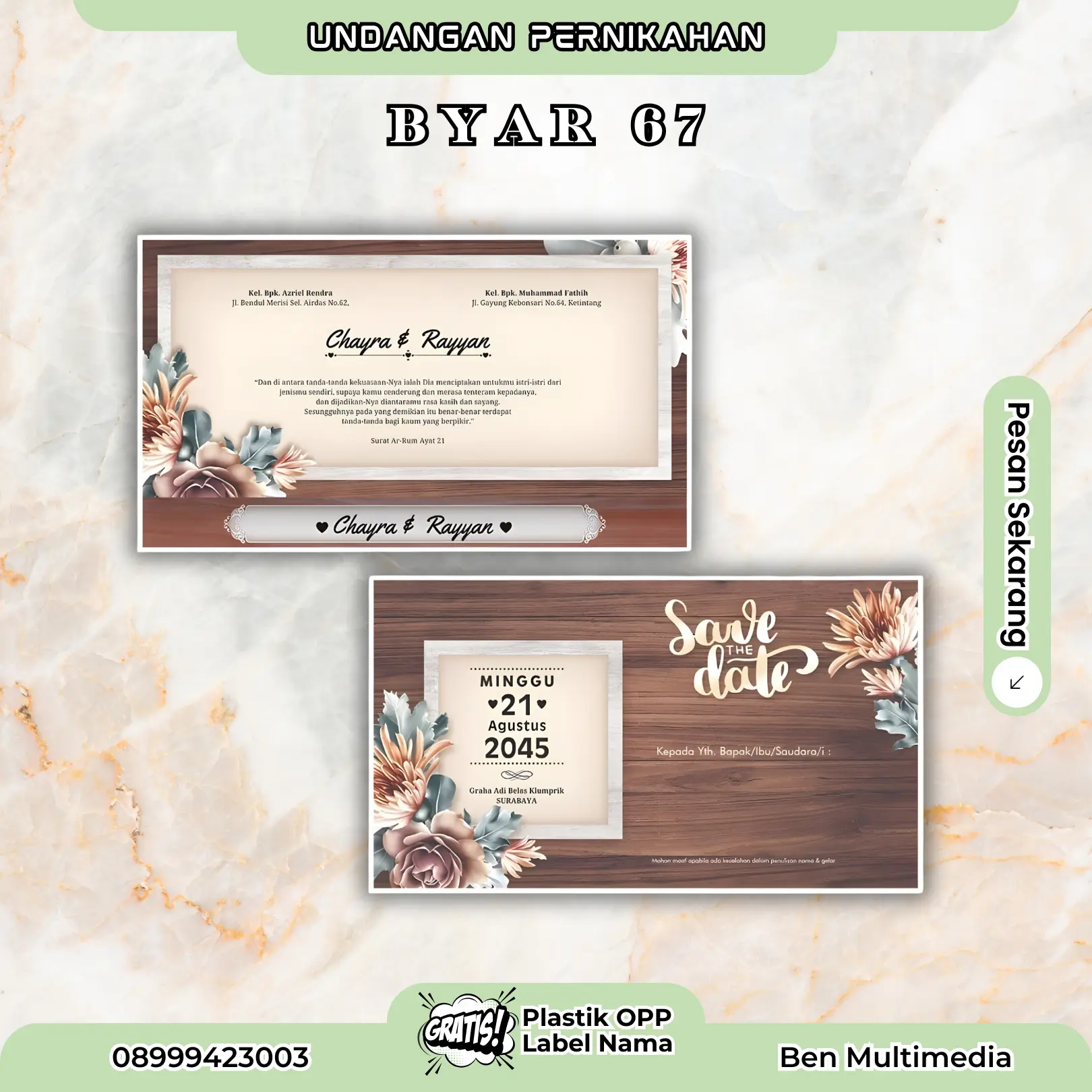 Dengan tampilan elegan, bahan berkualitas, dan harga yang sangat terjangkau, Percetakan Undangan Pernikahan Byar 67 menjadi solusi tepat bagi calon pengantin yang menginginkan undangan indah tanpa mengorbankan budget.